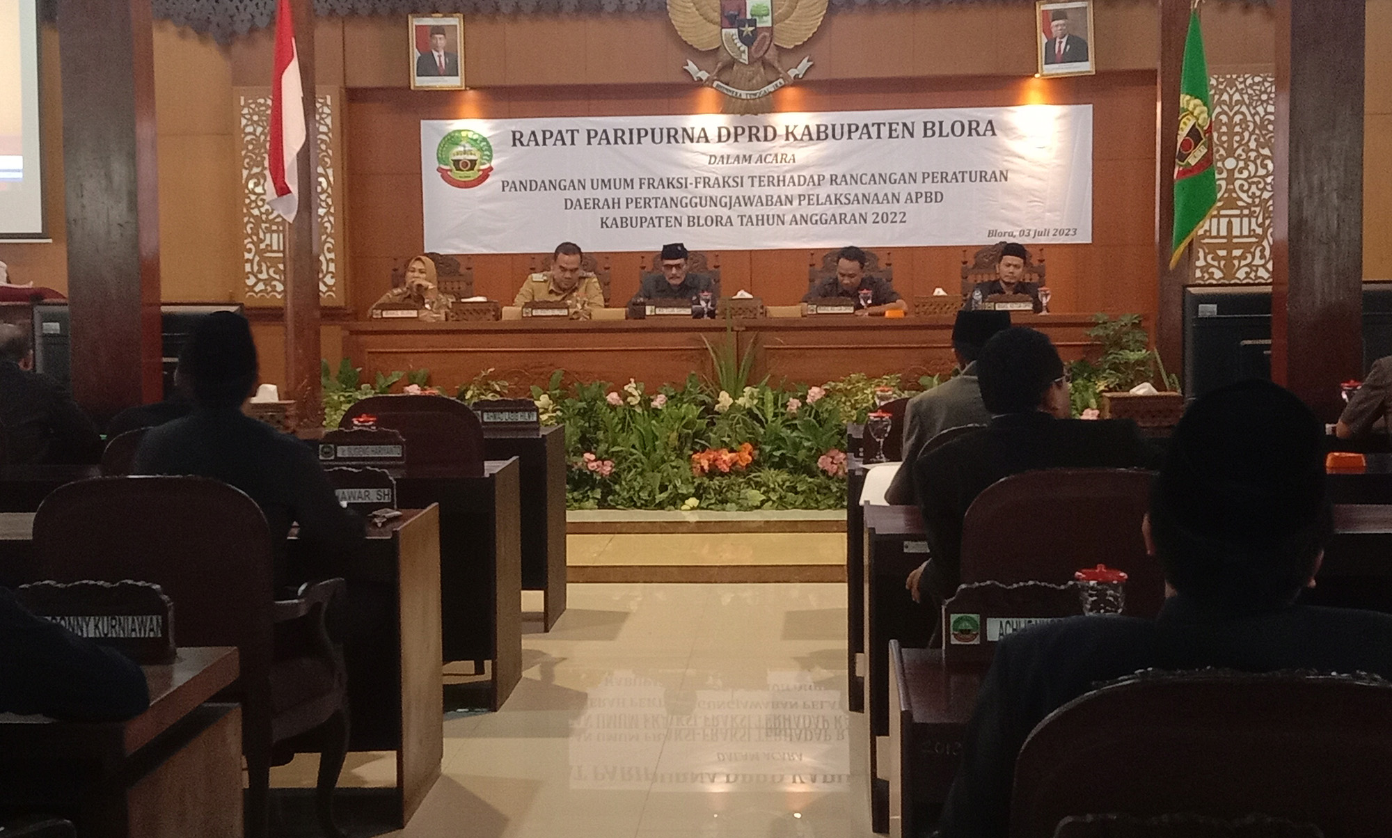 “Kami mendorong temen-temen melakukan upaya bersama, perjuangan bagi nasib penjaga sekolah. Karena apa, banyak yang sudah bekerja 40 tahun atau mereka yang minimal 10 tahun bekerja, namun masih belum mendapatkan apresiasi agar bisa diakomodir setara,” jelas angota Fraksi PPP DPRD Blora, Jariman saat membacakan Penyamapain Pandangan Umum Fraksi-fraksi dalan rapat paripurna DPRD Blora yang berlangsung di ruang rapat Paripurna DPRD Kabupaten Blor, Senin (03/07/2023).