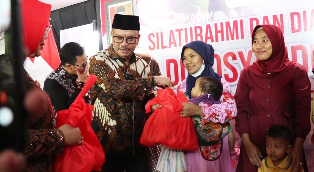 BAGIKAN BINGKISAN : Anggota Komisi IX DPR RI, Edy Wuryanto bagikan bingkisan kepada ibu-ibu, di sela-sela acara tausiyah kebangsaan bertajuk ‘’Memajukan Grobogan Mencerahkan Indonesia, di Grobogan, Jawa Tengah.
