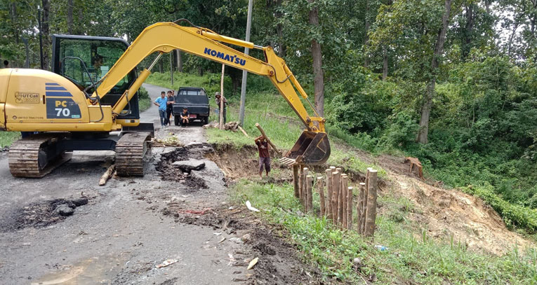 Dikemukakan, DPUPR Bina Marga telah menerjunkan eskavator. Dengan gotong-royong bersama masyarakat desa setempat melakukan penanganan sementara jalan yang longsor. ‘’Untuk sementara longsoran kita cerucuk (dolken),’’ jelas Nidzamudin.
