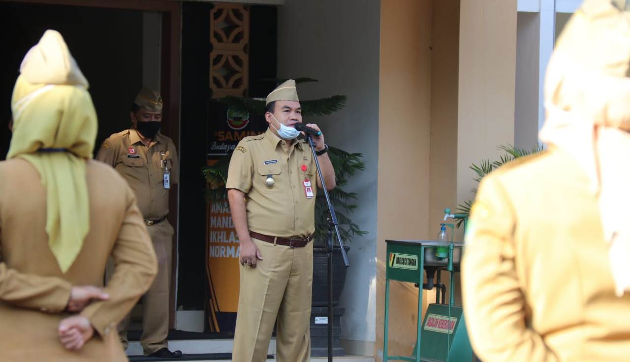 Acara dilanjutkan dengan apel pagi yang dipimpin oleh Wakil Bupati. Dalam kesempatan itu, di depan seluruh peserta apel pagi, Wakil Bupati H. Arief Rohman M.Si mengapresiasi kerja keras seluruh ASN Kabupaten Blora meskipun sedang dalam kondisi sulit, di tengah pandemi Covid-19.