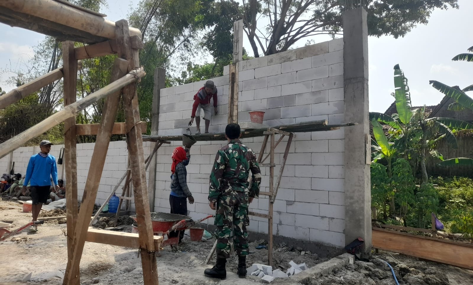“Kami memantau langsung teknik pemasangan hebel bersama para pekerja. Fokus utamanya adalah memastikan kualitas konstruksi terjaga sehingga bangunan ini aman dan tahan lama saat difungsikan nanti,” ujar Serda Prayogo Ari Wibowo.
