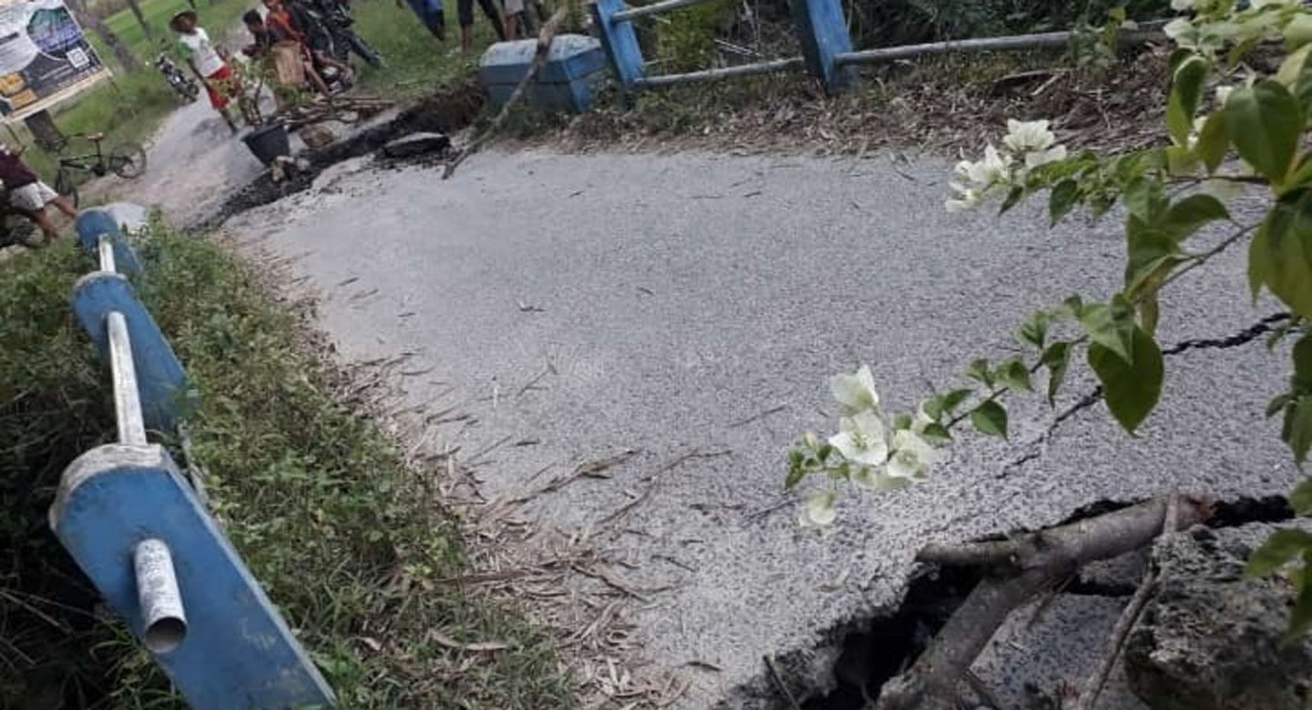 AMBROL : Jembatan di Dukuh Kalisangku, Desa Gempolrejo, Kecamatan Tunjungan, tepatnya di sebelah SMPN 3 Tunjungan yang ambrol Jumat (14/4/2023) pagi.